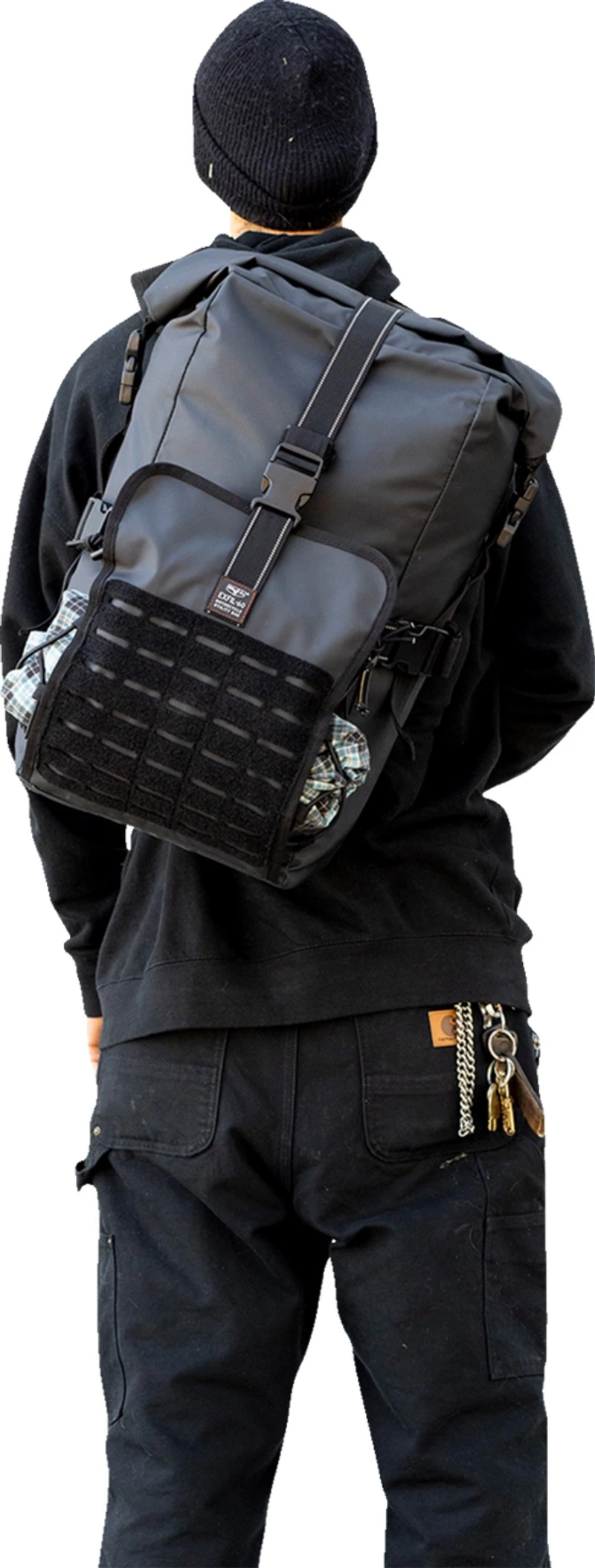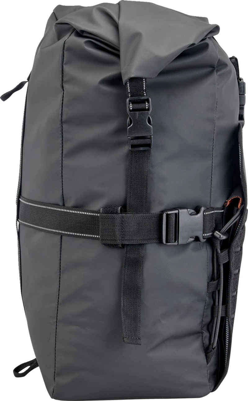 - Roll-top closure with reinforced nylon quick-release buckles keeps contents sealed tight