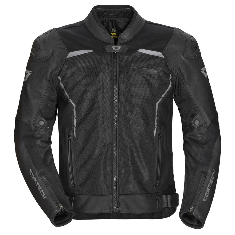 The Cortech Vader Jacket from Discount Moto Gear is a blend of style, comfort and safety, designed with motorcyclists in mind. The jacket is part of the Speedway Collection and features a unique combination of leather and mesh for an optimal fit and a feel that defines comfort. Reflective print accents add visibility, ensuring you’re noticed even in low light conditions.
