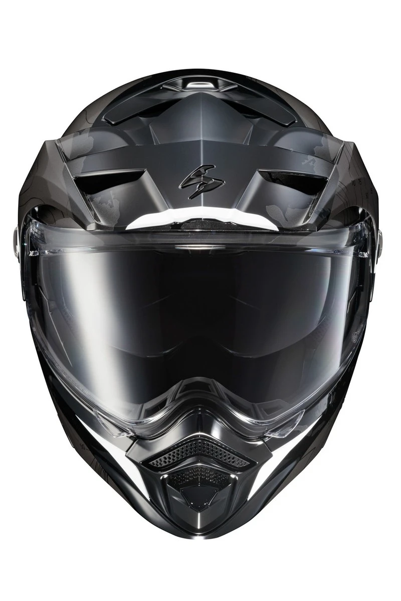 - Scorpion EXO’s face shield system pulls the shield securely against the eye port, ensuring a proper seal